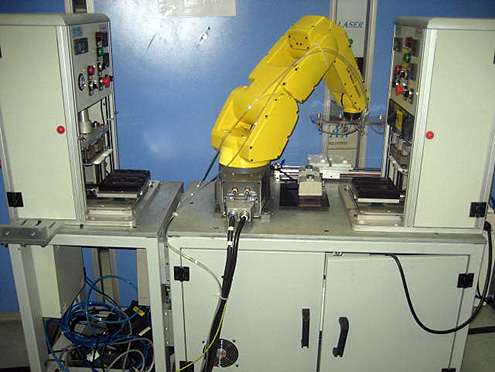 Fanuc六軸機(jī)器人配合熱熔機(jī)實現(xiàn)無人化作業(yè),包含兩制程的熱熔,一個單元全自動完成,穩(wěn)定節(jié)省人力。